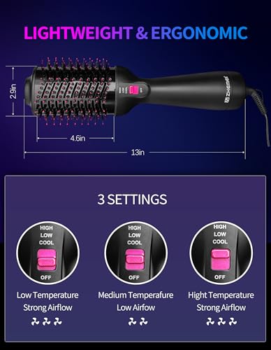1300W Hair Dryer Brush,4 in 1 Blow Dryer Brush Anti-frizz Ceramic Titanium Barrel with ALCI Safety Plug Professional Salon Hot Air Brush for All Hair Types (Black)