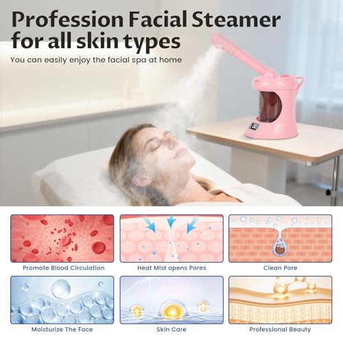 2-in-1 Hair and Facial Steamer with Extendable Arm,Face Steamer for Deep Cleaning,Hair Steamer Humidifier for Deep Conditioning,Tabletop Steamer for Personal Care Use at Home