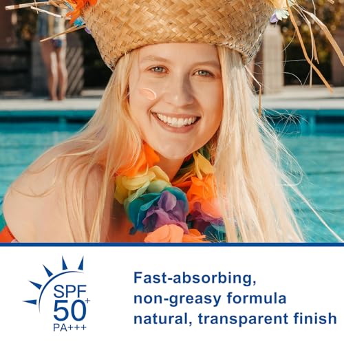 2PC Heartleaf Korean Face Sunscreen SPF 50+, Silky Moisture Sun Essence, Broad Spectrum UVA/UVB Protection, Lightweight & Non-Greasy, No White Cast, 50ml / 1.76 fl. oz.