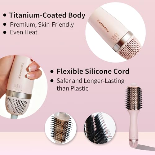 4.0 Ionic Hair Blow Dryer Brush-Lightweight 3X Faster Drying, 5-in-1 Blow Out Brush for More Shine, Curliness and Volume, Titanium Hot Hair Brush More Smooth, Anti-Frizz, Salon-Style Blowouts,Pink