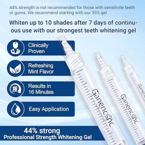 44% Ganencsnc 10 Syringes (3ml) - Teeth Whitening Gel Refills - Strong 44% Carbamide Peroxide Formula - Compatible with Teeth whitening Kit-Teeth Whitener for Coffee & Wine Stains