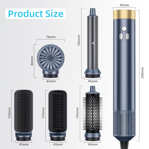 6-in-1 Hair Styler, Hair Dryer, Multi-Function Hot Air Brush Set, Ionic Blow Dryer with Interchangeable Attachments for Curling, Straightening, Volumizing, Gift for Women(Gemstone Blue)
