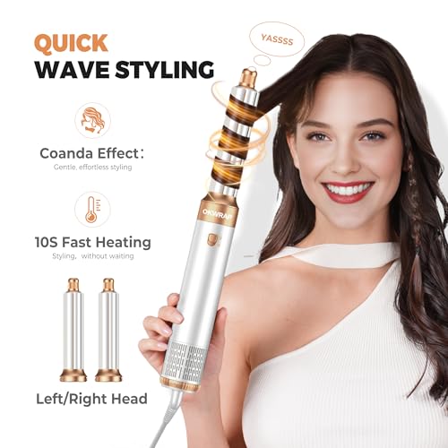 6 in ONE Blow Dryer Brush, Curling Wand Hair Styling Tools Set, Ionic Hot Air Hair Dryer, Massage Oval Hair Dryer, Left&Right Hair Curlers 100-120V (White)
