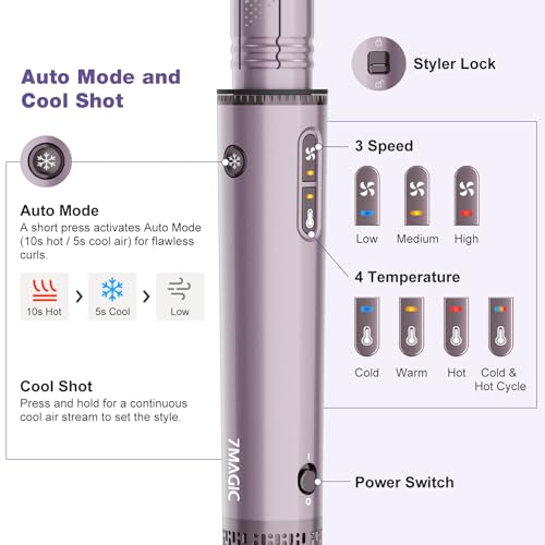 7MAGIC Hot Air Styler Wrap, 7 in 1 Professional Hair Dryer Brush with Auto-Wrap Curlers, Fast Drying Blow Dryer, Volumizing Straightening Styling Multi-Styler No Heat Damage, Travel Case (Purple)