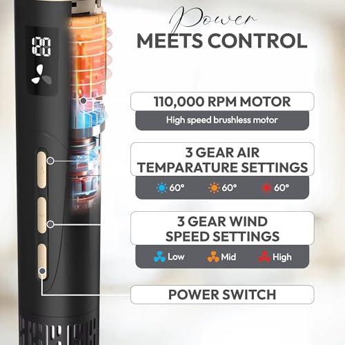 8 in 1 Hair Styler, Hair Styling Tools with 3 Heat Settings, Detachable Blow Dryer, Hot Air Curler Multi Styler Brush Set, Brush Curling Wrap Straight Curl Dry Volumiz Smooth – Black & Gold