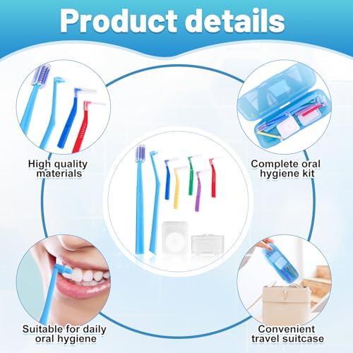 9-in-1 Orthodontic Oral Care Kit with Case – Toothbrush, End Tuft Toothbrush, 5 Interdental Brushes, Dental Floss, Dental Wax – Portable Hygiene Set for Braces and Daily and Travel Use (Blue)