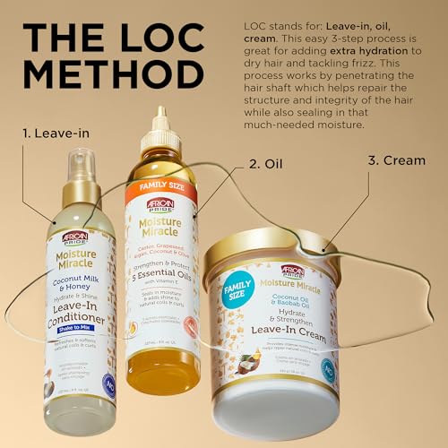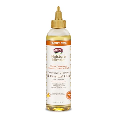 African Pride Moisture Miracle 5 Essential Hair Oils with Vitamin E | Moisture, Shine, Protection, and Growth | Argan, Castor, Grapeseed, Coconut, and Olive Oil | 8 oz