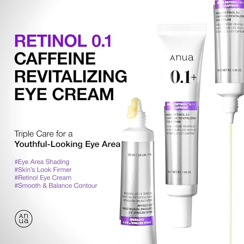 ANUA Retinol 0.1 Caffeine Revitalizing Eye Cream, Under Eye Cream For Hydration, Glow Up Eye Contour, Niacinamide, Retinol For Face, Night Cream For Eye Care, Korean Skin Care (30g/1.05oz)