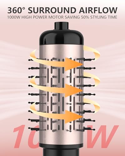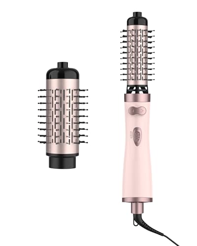 ANWA Rotating Hair Dryer Brush, 4-in-1 Hot Air Styler and Rotating Brush, Rotating Blow Dryer Brush with 2 Detachable Brushes(1.5"& 2"), Pink