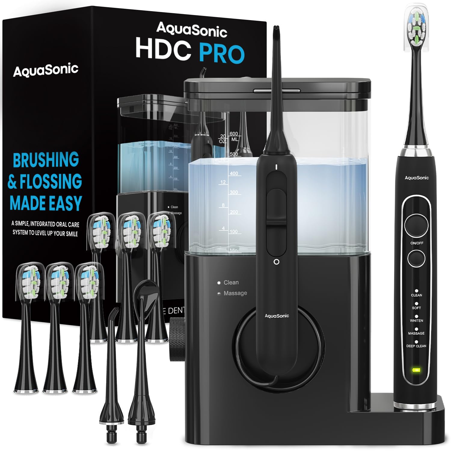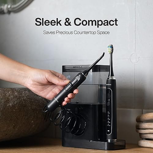 AquaSonic Home Dental Center PRO – Brushing & Flossing Made Easy – Brush & Floss – Power Toothbrush & Water Flosser – Whiter Teeth & Healthier Gums – Black Series Pro+Oral Irrigator