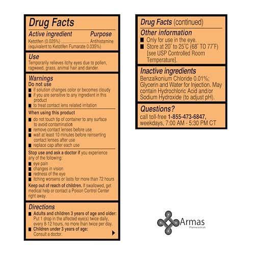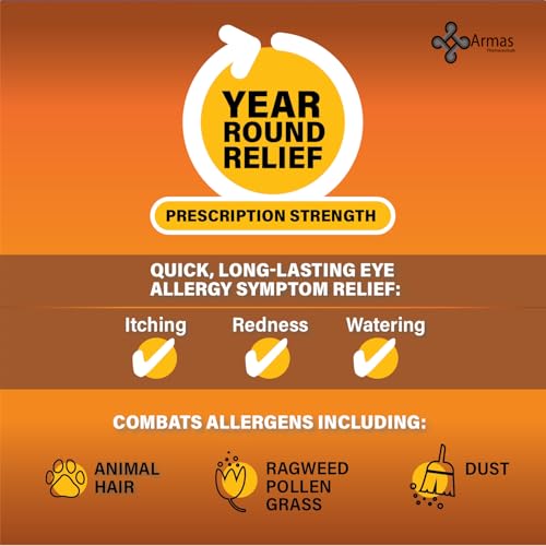 Armas Allergy Eye Drops, Itch Relief, Works in Minutes, Relief for Up to 12 Hours, Prescription Strength, Ketotifen Antihistamine Solution, 30 Day Supply, 0.17 Fl Oz