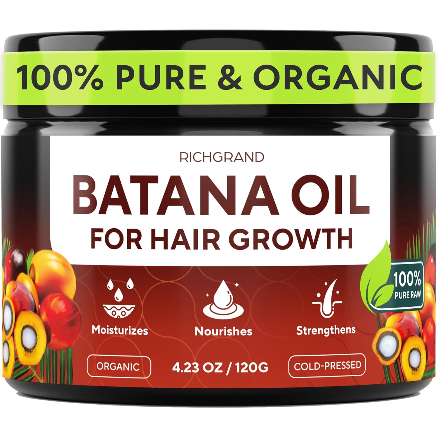 Batana Oil for Hair Growth - 100% Raw & Organic Unrefined Batana Oil - Cold Pressed Hair Mask for Scalp Health, Thicker Hair & Split Ends Repair - Natural & Pure (4.23 oz)