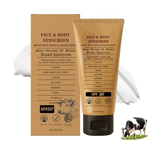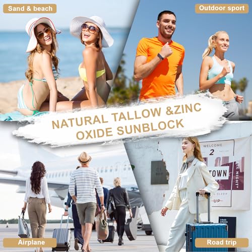 Beef Tallow Sunscreen, Natural Mineral Sunscreen for Face, SPF50 Sunblock Beef Tallow for Skin Non Greasy Clean, Anti White Cast, Moisturizing for Face and Body, Women and Men. - 3 fl.oz