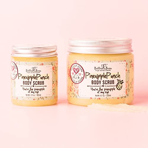 Bella & Bear Pineapple Body Scrub Exfoliator – Vegan Sugar Scrub, Travel Size 3.4 oz, Fresh Pineapple Scent