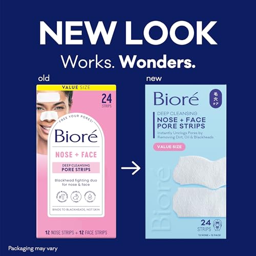 Bioré Nose+Face Blackhead Remover Strips, Deep Cleansing Strips for Nose, Chin, or Forehead, Instant Blackhead Removal and Pore Unclogging, Oil-free, Non-Comedogenic Use, Value Size 24 Count