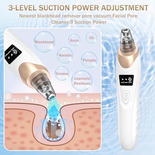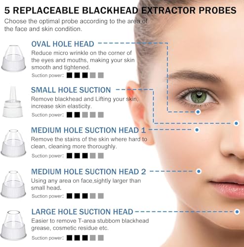 Blackhead Remover Pore Vacuum Kit -Blackhead Extractor Tool with 3 Adjustable Suction Levels, 5 Probes, USB Rechargeable, Suitable for Women and Men(White)