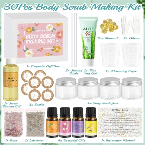 Body Scrub Making Kit- Make Your Own Salt Body Scrub with Almond Oil, Essential Oils, Moisturizing and Exfoliating Dry Skin Hand Foot DIY Organic Body Scrubs Christmas Gifts For Women & Men