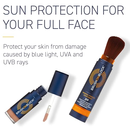 Brush On Block Full Face Sun Protection Kit, Translucent Mineral Powdered Sunscreen & Protective Lip Oil SPF 30, Reef Friendly, FSA HSA Eligible