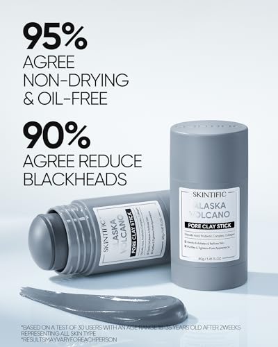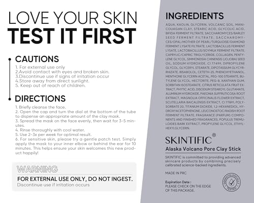 Deep Pore Cleansing Blackhead Remover Face Mask Stick, Mud Mask with Natural Alaska Volcano Clay, Gentle Exfoliating, Smoothing Skin, Non-Drying, Skincare Facial Mask