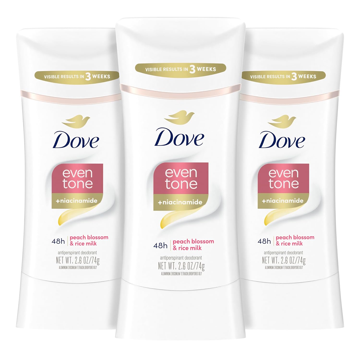 Dove Even Tone Antiperspirant Deodorant Stick Peach Blossom & Rice Milk 3 Count 2.6 oz