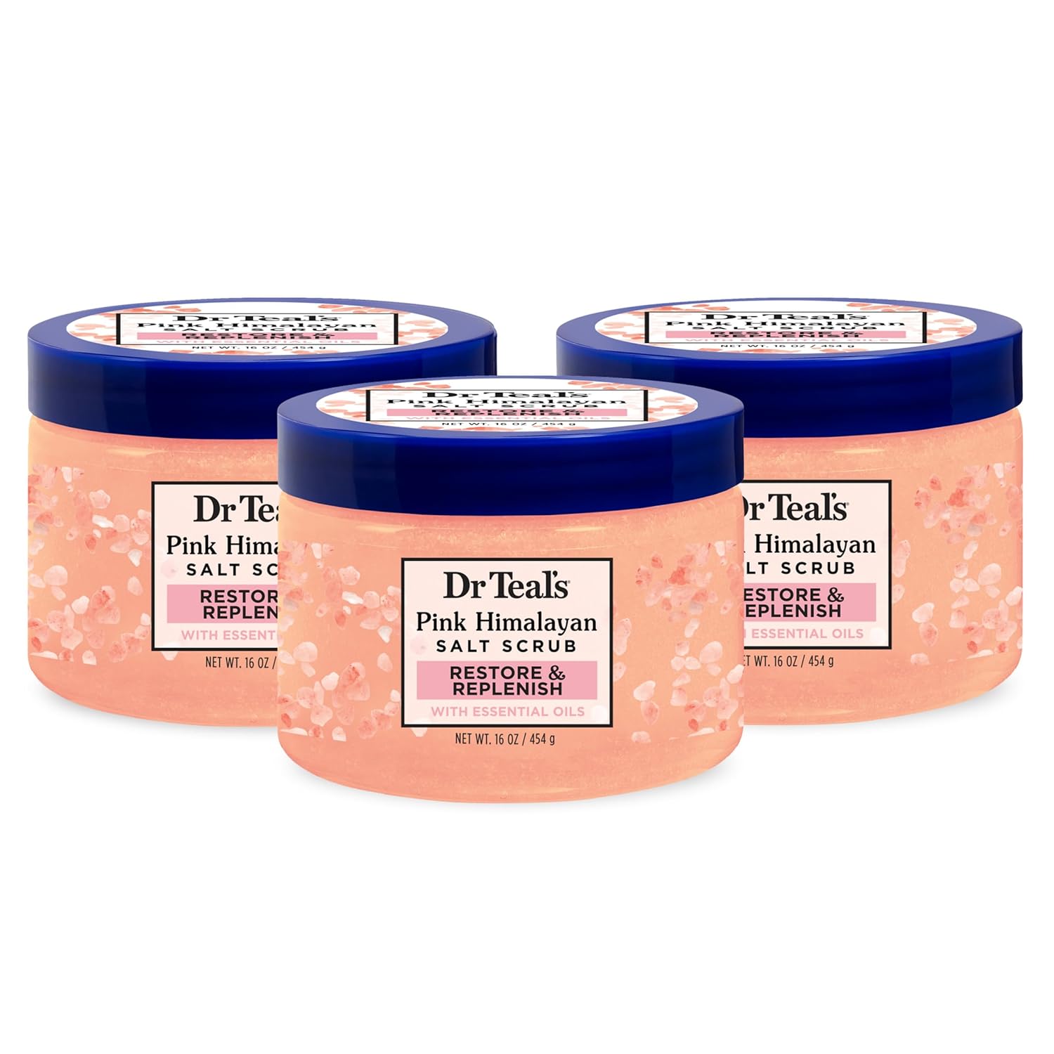 Dr Teal's Pink Himalayan Salt Body Scrub, Restore & Replenish with Pure Epsom Salt & Essential Oils, 16 oz (Pack of 3)
