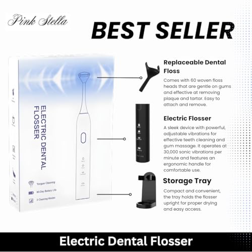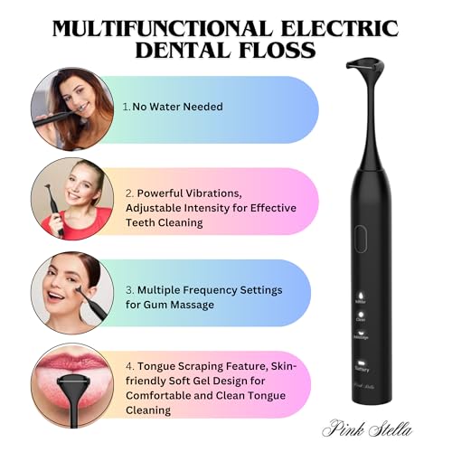 Electric Dental Flosser| Tongue Scrapper| Gum Massager and Stimulator for Adults and Kids| 60 Reuseable Floss Heads| A Better Alternative to Water Flosser