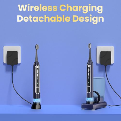 Electric Toothbrush with Water Flosser Combo, All in One Sonic Toothbrush with 3 Modes & 5 Flossing Speeds, Rechargeable & Portable for Adult Teeth Cleaning and Plaque Removal, Dark Blue