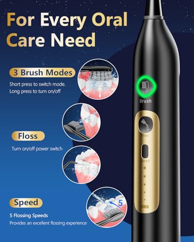 Electric Toothbrush with Water Flosser Combo, Professional Flossing Toothbrush with 3 Sonic Brush Modes & 5 Water Pressures, Cordless Water Flosser for Adults Teeth Cleaning Plaque Removal