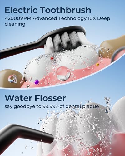 Electric Toothbrush with Water Flosser for Teeth, Sonic Electric Toothbrush and Electric Floss for Adults and Kids, Water Dental Picks, Cleaning and Flossing Dental Care, Waterproof