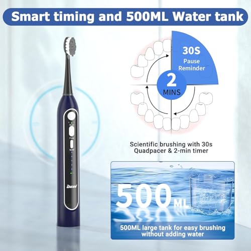 Electric Toothbrush with Water Flossers for Adults, Upgrade Flossing Toothbrush Combo, 5 Floss Speeds&3 Brush Modes, 500mL Tank, 30-Day Battery, for Adults & Teens, Gums, Braces, Dental Care,Blue