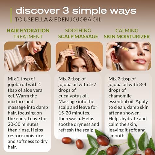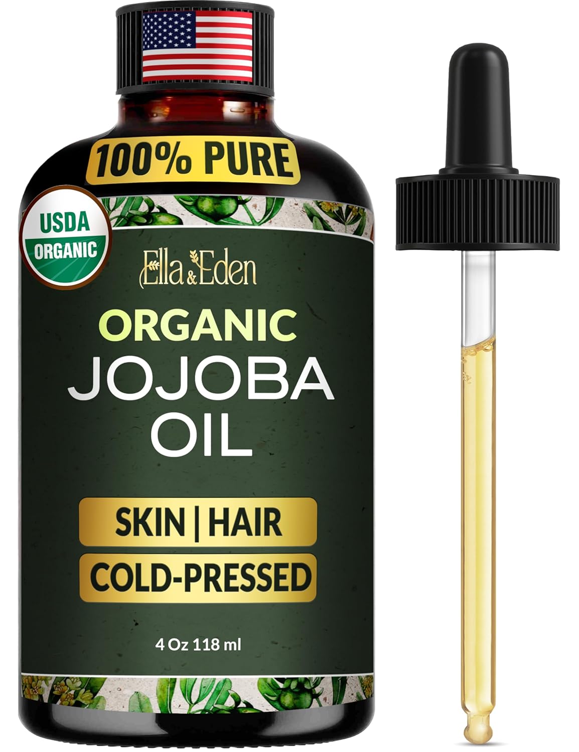 Ella & Eden Organic Jojoba Oil – USDA Certified, Cold-Pressed, 100% Pure & Unrefined, Hexane-Free Oil for Skin, Face, Hair & Nails – 4 Fl Oz Glass Bottle