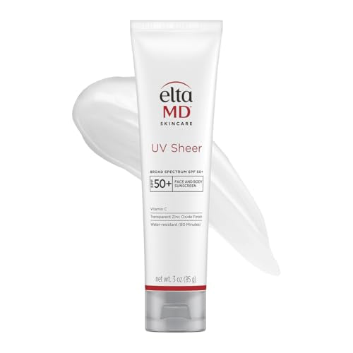 EltaMD UV Sheer Face and Body Sunscreen SPF 50+, Oil Free, No White Cast Sunscreen for Face and Body, Zinc Oxide Formula, 3.0 oz Tube