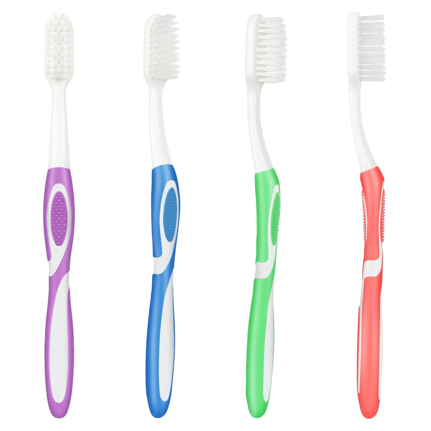 Extra Soft Toothbrushes for Adults - Flossing Toothbrush for Sensitive Teeth and Receding Gums, Tapered Bristles Ultra Clean Plaque Remover Travel Toothbrush Individually Wrapped Pack of 4