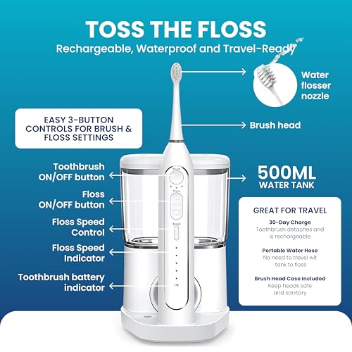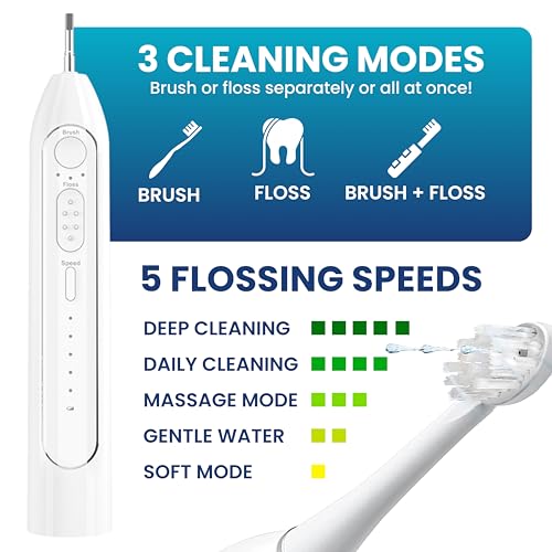 Flossing Toothbrush Rechargeable Electric Toothbrush with Water Flosser - Portable Water Pick Toothbrush Combo Cordless Sonic Electric Toothbrush and Water Flosser - Black