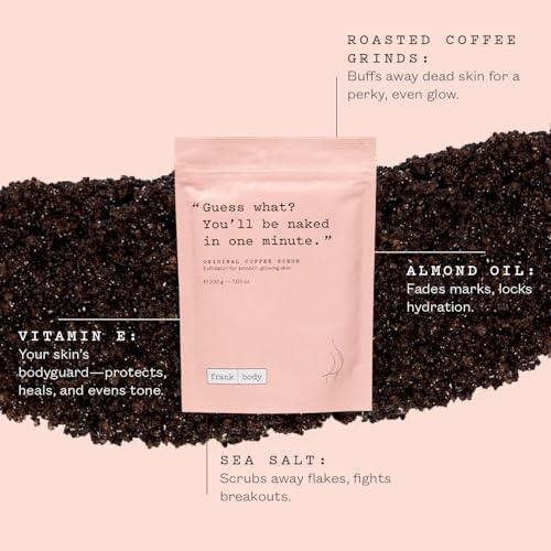 Frank Body Original Coffee Scrub, 7.05oz | Natural & Cruelty Free Exfoliating Body Scrub | Hydrating Vegan Scrub Skin Care For Stretch Marks, Acne, Cellulite | 1ct