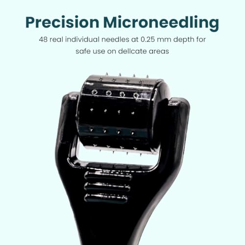 Gin Amber Beauty Mini Derma roller (0.25mm) - 48 Real Individual Needles, Microdermabrasion Device for Skin Care, Serum Absorption with Microneedling, Tool, Hygienic Case (Black Mini 0.25mm)