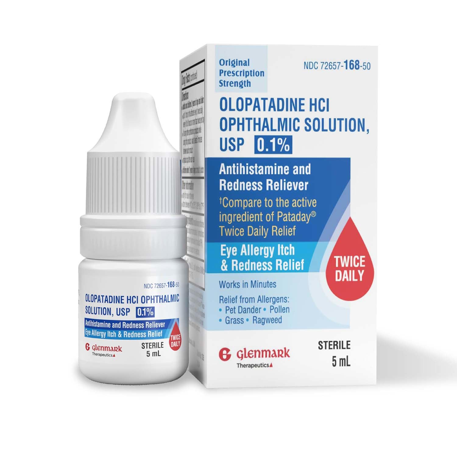 Glenmark Therapeutics Olopatadine Eye Drops for Allergies, Redness Relief, Antihistamine Eye Drops, Allergy Relief from Pet Dander, Pollen, Grass, Ragweed, Works in Minutes, Olopatadine HCl 0.1%, 5ml