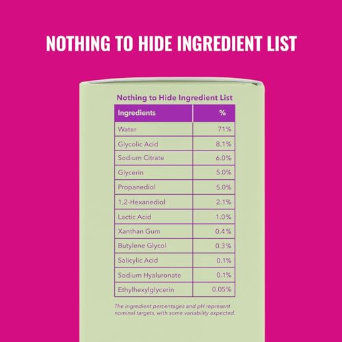 | Active Ingredients | Glycolic Acid, Lactic Acid, Salicylic Acid, Salicylic Acid,Glycolic Acid, glycolic_acid, lactic_acid, salicylic_acid |