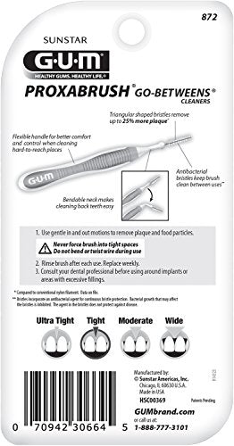 GUM-872H Sunstar Proxabrush Go-Betweens Cleaners Tight, 10 Count