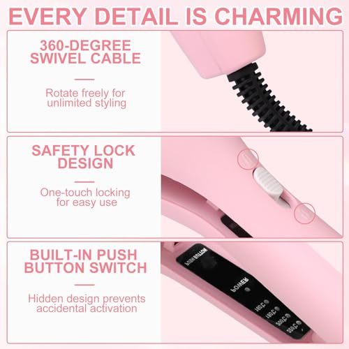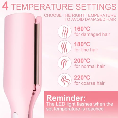 Hair Crimper, Waver Curling Iron Hair Styling Tool with Negative Ionic Technology Crimper Hair Tool for Creating Smooth Waves, French Anti-Scald Wave 32mm Curling Iron for Short Hiar, Pink