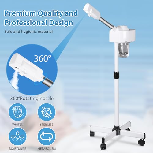 HomGarden Professional Facial Steamer, Hot Mist & Timer Function, Adjustable Height and Angle, Vaporizador Facial Professional Steamer On Wheels for Home Use & Spa Salon Skin Cleasning