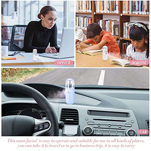 Honoson 2 Nano Facial Mister Sprayer Portable Face Nano Mister for Eyelash Extensions USB Rechargeable 1 oz Handy Skin Care Machine for Face Hydrating, Daily Makeup(White and Blue)