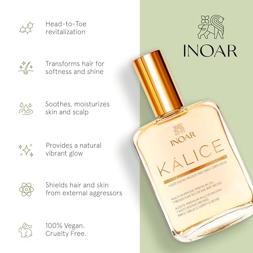 INOAR Kalice Óleo Essential Oil Blend Multi-Purpose Moisturizing & Regenerating Serum for Hair, Face & Body, 3.4 fl oz