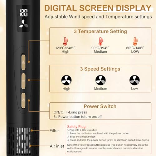 JAMIEWIN 8 in 1 Hair Dryer Brush Set, Detachable Hot Air Wrap Hair Styler with 110,000 RPM High-Speed, Fast Drying - NO Heat Damage Blow Dryer Brush for Curling, Volumizing, and Straightening
