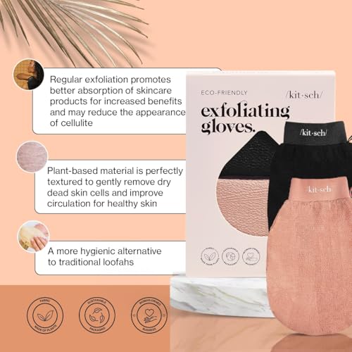 Kitsch Exfoliating Gloves 2pc – Korean Exfoliating Mitt & Deep Exfoliating Body Scrubber for Shower, Bath | Body Exfoliator, Dead Skin Remover | Skin Care for Smooth, Renewed Skin - Black & Terracotta