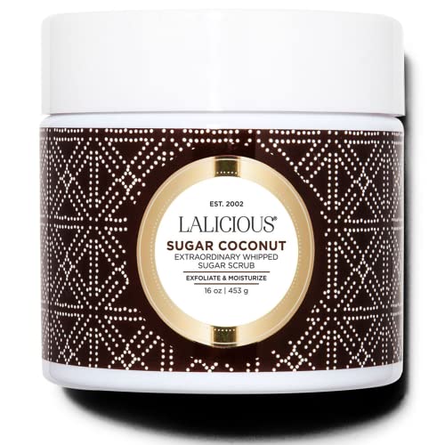 LALICIOUS Sugar Coconut Sugar Scrub, Exfoliating Body Scrub, Moisturizing Extraordinary Whipped Body Exfoliator, Gentle Exfoliating Body Scrubber Exfoliator for Radiant Skin, No Parabens - 16oz