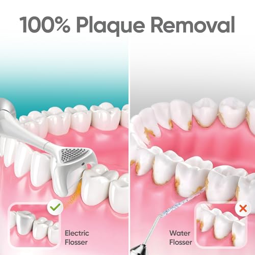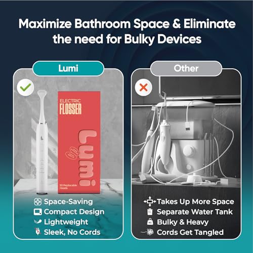 Lumi Electric Flosser | 2 in 1 Electric Flosser for Adults w/ 4 Speeds + 50 Replacement Heads - Dentist Recommended | Easy Glide Flossing for Gentle Gum Care, Tongue Scraper, Water Alternative flosser