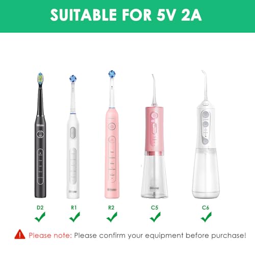 Mrgru 5 V Replacement Charger and Cable for Bitvae Electric Toothrush Compatible with D2/R1/R2/S2, C2/C5/C6 Water Dental Flosser USB Charging Cord Power Supply