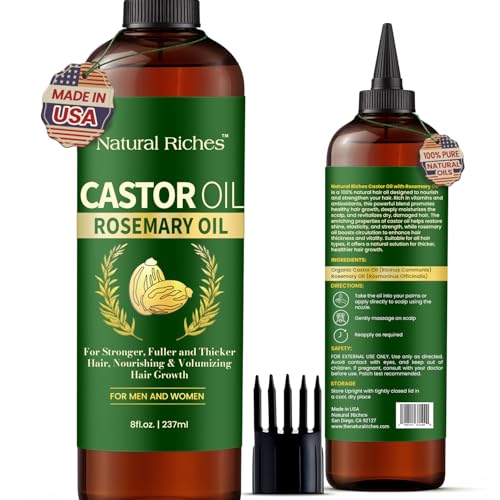 Natural Riches Castor Oil with Rosemary Oil, 8 fl oz, For Stronger, Fuller and Thicker Hair Growth - Organic Castor Oil with Rosemary Oil Premium Grade hair treatment