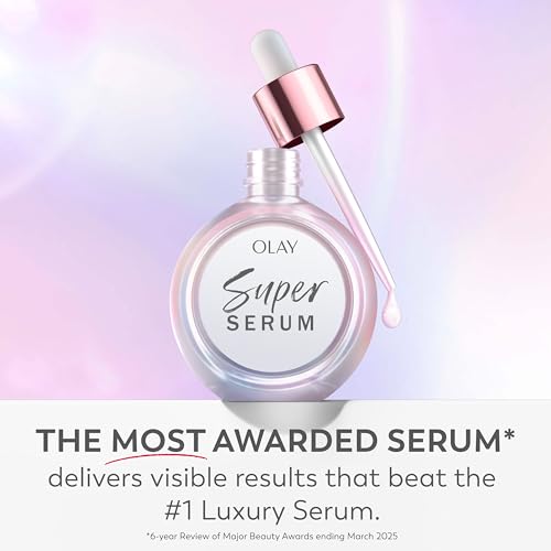 Olay Super Serum Trial Size - Niacinamide, Vitamin C & E, Collagen Peptide, AHA - 5-in-1 Skin Care Benefits - Healthy Glow, Brightening, Hydrating, Smoothing, Firming, Evens Tone, Anti-Aging, 0.4 Oz